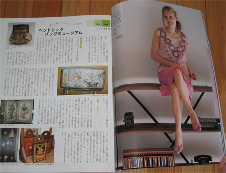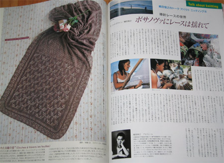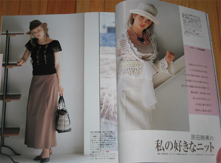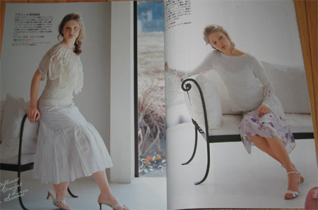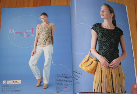 The book is a nice mix of both crochet and knit patterns. Some very traditional lacey tops that look like they have walked out of the past and then some pretty hip little summer tops. There is a great article on making felt jewlery. With this amazing tree branch work.